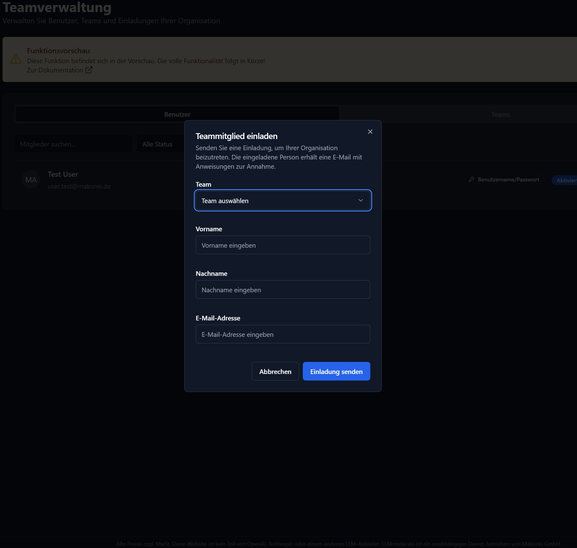 - Geben Sie die Benutzerdaten ein, wählen Sie ein Team und weisen Sie eine Rolle zu.